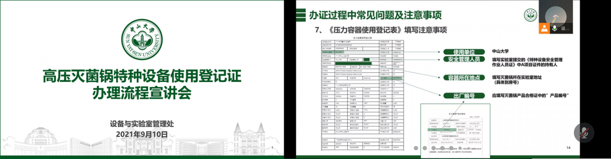 为严格落实《中华人民共和国特种设备安全法》的相关规定,确保我校实验室高压灭菌锅合法、合规和安全使用,提升高压灭菌锅使用登记证办理的工作效率,2021年9月10日,设备与实验室管理处组织校内高压灭菌锅使用单位的安全管理人员及实验室师生召开高压灭菌锅特种设备使用登记证办理流程线上宣讲会。