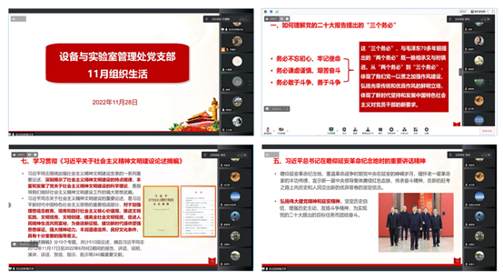 2022年11月28日下午,设备与实验室管理处党支部通过线上会议形式开展11月组织生活,支部书记胡国庆同志主持会议,支部全体党员和入党积极分子共计20人参会